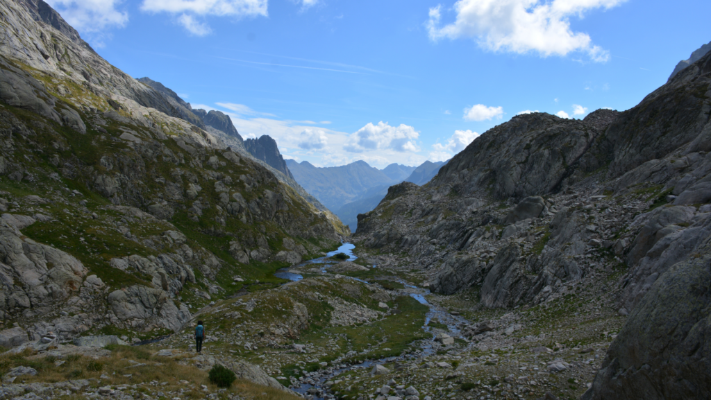 Du Refuge du Portillon, partez pour une journée d’exploration à travers le col de Remuñe. Traversez un paysage aux multiples facettes, où se mêlent torrents et pelouses d’altitude, pour finalement rejoindre l’Hospital de Bénasque (1800 m). Une étape riche en contrastes, avec le choix entre un itinéraire classique et une variante plus sauvage, évoquant les anciens échanges entre la France et l’Espagne.